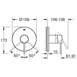 - Distance between cold and hot pipes center: 150 mm