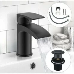 This matt black finished mini mixer tap is perfect for small or cloakroom basins, and features a closed sloped waterfall spout design, which looks great in modern bathroom designs. Suitable for all plumbing systems, and operates between 0.2 and 6 bar pressures. Hot and cold water pressure preferably balanced. 10 year guarantee against manufacturing faults