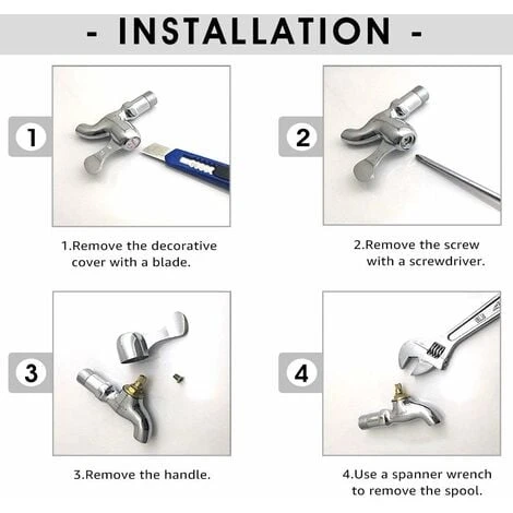 - [Installation Steps] First remove the decorative cover with a blade, then use a Phillips screwdriver to remove the screws, then remove the handle, use an adjustable wrench to remove the old valve core, and finally install a new faucet valve core to restore the faucet handle.