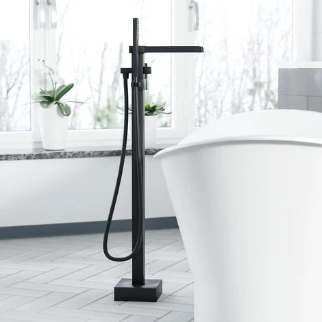 Our Ozone freestanding waterfall bath shower mixer tap is perfect for adding a beautiful and elegant ambience to your bathroom. It is perfect for complimenting any modern bathroom, and the high quality black matt finish is guaranteed to add that sparkle to your bathroom. It has great build quality, with a splash-free waterfall from the unique spout, which is great for a modern look in your bathroom. The bath filler is completed with a stylish square handheld shower head to compliment the modern design of this bath shower mixer.