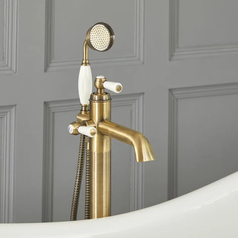 Milano Elizabeth – Traditional Freestanding Bath Shower Mono Mixer Tap With Lever Handle – Brushed Gold