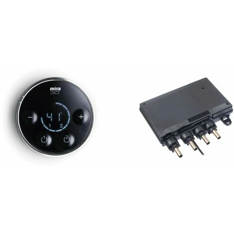 Get the ultimate in showering control with Mira’s easy to use wireless dual controller from the Platinum range. All you’ll need to do is decide which fittings you’d like to go with this high-pressure option. The Mira Platinum valve and controller provides the user with total protection with a number of different safety features. Precise temperature control and a maximum temperature setting keeps all the family safe, stopping vulnerable people from accidentally putting the temperature too high. Thermostatic control keeps the temperature completely level too, a great feature to stop sudden changes when other appliances are used elsewhere in the house. The controller is of course wireless, meaning you can mount it up to 10m away from the digital mixing valve for the most convenient installation for you. You can even add a second controller if you wanted to be able to get the shower warmed up before you get there. Talking of warming up, the brilliantly clever warm-up mode pauses at your ideal temperature so it’s perfect when you want to get it. A digital clock display keeps you running on time. This also works hand in hand with the Eco mode, showing a 5-minute timer to help conserve water and save battery life. Features & Benefits: • High pressure option • Wireless data connection between mixer and controller • Thermostatic control to stop water temperature fluctuations • Automatic shutdown • Maximum temperature setting • Separate temperature and flow controls • Programmable functions • Programmable to suit your customers’ lifestyle – warm up mode, shower timer, eco setting and clock display • Large, long life filters & a replaceable cartridge • 15mm push fit inlet connections • 15mm push fit outlet connections • Built in push-fit isolators • Fantastic 5 Year guarantee Technical Specifications: • Cold Water range 1°C-20°C • Hot Water range 55°C-65°C • Minimum maintained pressure: High pressure: 0.5 bar (5 metre head) • Maximum maintained pressure: High pressure: 5.0 bar (50 metre head) • Maximum static pressure: High Pressure: 10.0 bar (100 metre head) • Flow rate: Up to 16 l/min at 1 Bar