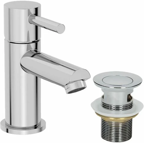 Modern Bathroom Mini Mono Basin Mixer Tap Chrome Waste