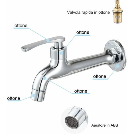 Utilisation : Robinet d’évier de salle de bain à montage mural pour eau froide uniquement. Filetage mâle G 1/2 pouce sur le mur, soupape de dégagement rapide, poignée à levier, facile à installer et à utiliser.