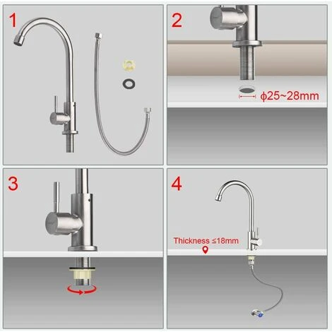 【Robust and durable】: The single cold kitchen faucet is made of 304 stainless steel. High-quality materials and technology ensure the product’s service life, safety and comfort.