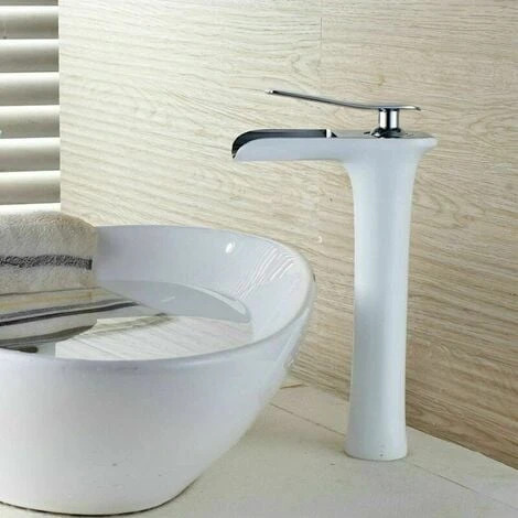 Stylish white body of the waterfall faucet consists of a minimalist chrome spout and handle in white color with non-toxic and lead-free solid brass material, with better resistance to corrosion and staining. rust.