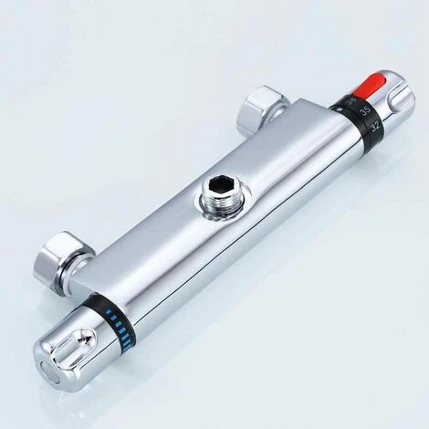 et à l’humidité, non rouillé, élimine les problèmes d’oxydation. - 【Conception Pratique】 La poignée gauche peut contrôler le débit d’eau et la poignée droite contrôle la température de l’eau. Avec la conception de la poignée antidérapante, vous pouvez utiliser facilement le thermostat de douche. La température de
